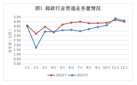 2022年,邮政行业寄递业务量累计完成49.86亿件,同比增长12.34%。其中,365体育网址_365scores下载_365app手机版官方业务量累计完成35.32亿件,同比增长12.98%;邮政寄递服务业务量累计完成14.54亿件,同比增长10.83%。