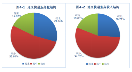 2022年,皖北、皖中、皖南地区365体育网址_365scores下载_365app手机版官方业务量比重分别为29.34%、52.84%和17.82%,业务收入比重分别为26.21%、54.76%和19.03%。去年同期相比,皖北地区365体育网址_365scores下载_365app手机版官方业务量比重上升1.78个百分点,365体育网址_365scores下载_365app手机版官方业务收入比重上升0.72百分点;皖中地区365体育网址_365scores下载_365app手机版官方业务量比重下降0.83个百分点,365体育网址_365scores下载_365app手机版官方业务收入比重下降0.50百分点;皖南地区365体育网址_365scores下载_365app手机版官方业务量比重下降0.95个百分点,365体育网址_365scores下载_365app手机版官方业务收入比重下降0.21个百分点。