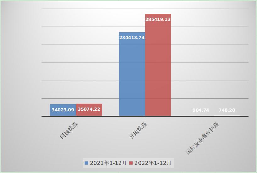 1-12月,同城365体育网址_365scores下载_365app手机版官方业务量累计完成35074.22万件,同比增长3.09%;异地365体育网址_365scores下载_365app手机版官方业务量累计完成285419.13万件,同比增长21.76%;国际/港澳台365体育网址_365scores下载_365app手机版官方业务量累计完成748.20万件,同比下降17.30%。
