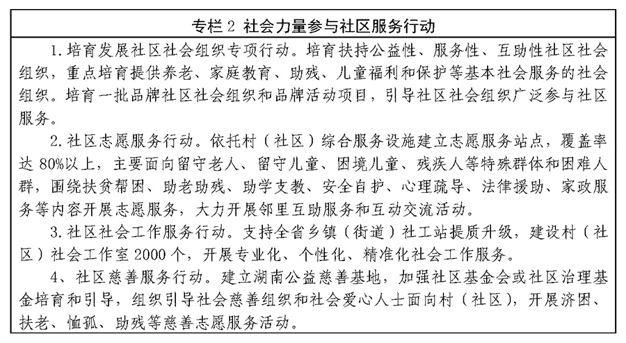 8.提高数字化政务服务。推动“互联网+政务服务”向乡镇(街道)、村(社区)延伸覆盖。加快部署政务通用自助服务一体机,完善村(社区)政务自助便民服务网络布局。依托湖南政务服务网、政务服务移动端和全省政务服务一体化平台等现有设施,增加政务服务事项网上受理、办理数量和种类,面向基层群众提供一站式、一门式服务。加强社区治理信息系统网络安全防护,强化数据安全和个人信息保护。实施“互联网+基层治理”行动,推进村(社区)数据资源综合采集,完善乡镇(街道)、村(社区)地理信息等基础数据,根据服务群众需要依法依规向村(社区)开放数据资源。推动互联网应用适老化及无障碍改造,解决好老年人、残疾人等特殊群体在运用智能技术方面遇到的突出问题。