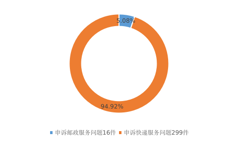 2022年12月吉林省邮政管理局通过“12305”邮政行业消费者申诉电话、申诉网站、微信平台等渠道共受理消费者申诉315件。申诉中涉及邮政服务问题的16件,占总申诉量的5.08%,同比上升100.00%,环比下降5.88%;涉及365体育网址_365scores下载_365app手机版官方服务问题的299件,占总申诉量的94.92%,同比下降43.58%,环比下降2.92%。