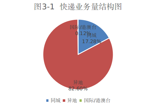 2022年,同城、异地、国际及港澳台365体育网址_365scores下载_365app手机版官方业务量分别占全部365体育网址_365scores下载_365app手机版官方业务量的17.28%、82.6%和0.12%;业务收入分别占全部365体育网址_365scores下载_365app手机版官方业务收入的9.5%、56%和3.7%。与去年同期相比,同城365体育网址_365scores下载_365app手机版官方业务量的比重下降0.1个百分点,异地365体育网址_365scores下载_365app手机版官方业务量的比重上升0.22个百分点,国际及港澳台业务量的比重下降0.11个百分点。