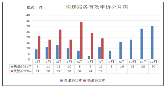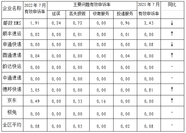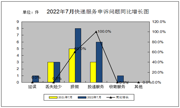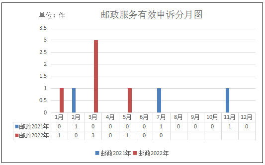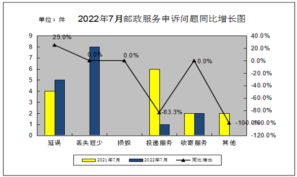 2022年7月,消费者对邮政服务问题有效申诉为0件。