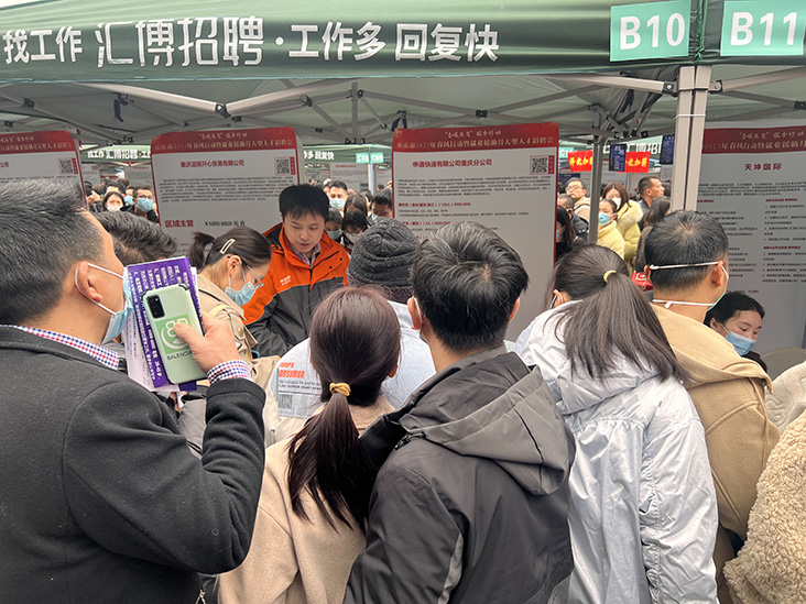 近日,重庆市邮政管理局和市就业局联合举行就业援助月人才招聘会,吸引约5000人参加。