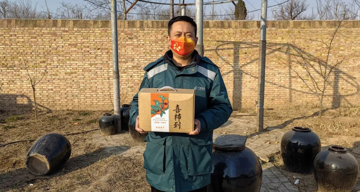 渭南市富平县邮政企业在柿饼销售旺季到农户家中收寄“喜柿到”主题的富平柿饼(作者:孙阳)