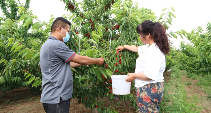 渭南市澄城县寄递企业在樱桃节期间到田间地头服务农户,助力农产品寄递和农民增收(作者:骆延峰)